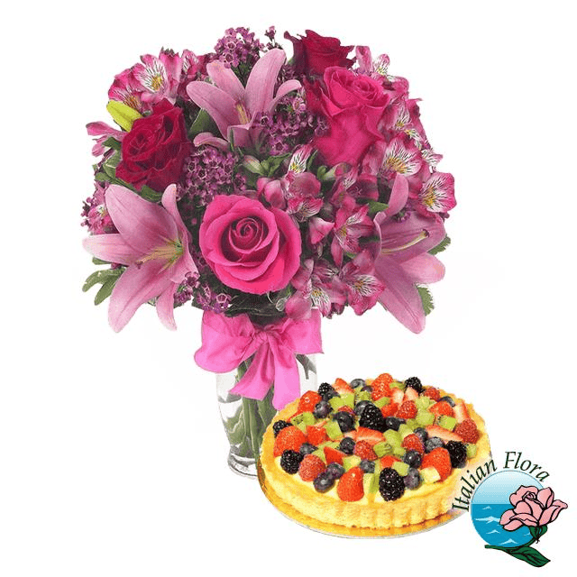 Indulge in a delightful treat with the Pink Bouquet and Fruit Cake set from Italian Flora. This elegant gift pairs a fresh bouquet of vibrant pink flowers with a handcrafted fruit cake, creating a beautiful harmony of color and flavor.
