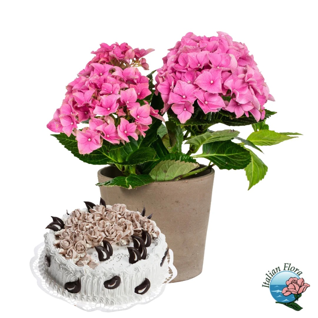 Celebrate Special Moments with Italianflora’s Pink hydrangea plant with delicious cake
